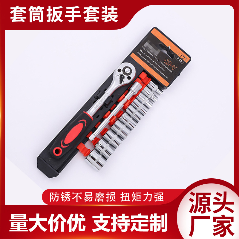 Penjualan langsung pabrik 12 potong alat pemeliharaan otomotif perbaikan otomatis kunci pas soket roda gigi searah kombinasi perangkat keras grosir
