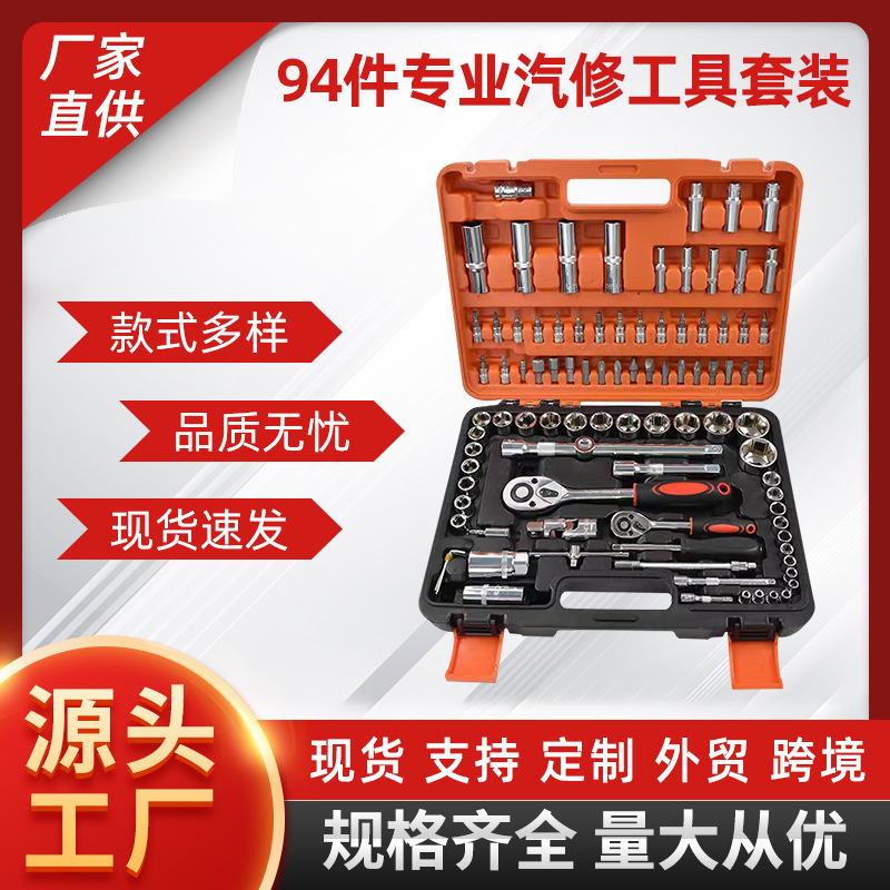 94 buah set alat manual kombinasi mobil keluarga setelan kunci pas ratchet silinder kotak plastik alat perbaikan otomatis grosir