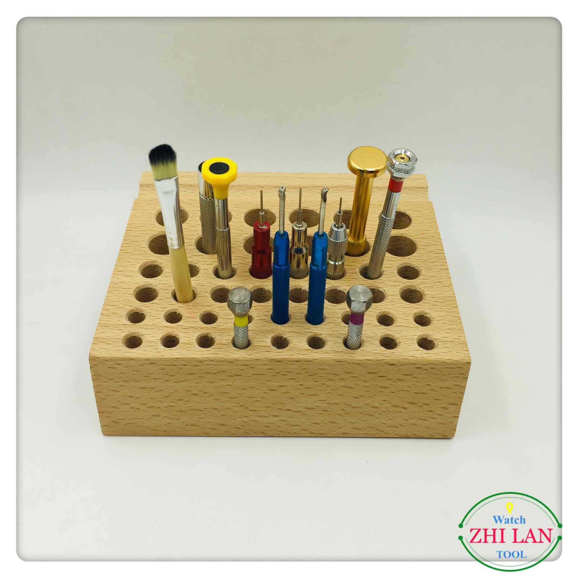 Alat perbaikan jam tangan kayu 46 mata, pemegang alat jam kayu pemegang alat jam 46 lubang