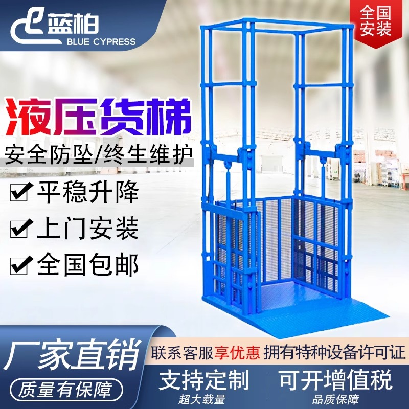 Elevator muatan pabrik elektrik tipe rel panduan kecil kerekan platform pengangkat hidrolik pengangkat barang bawaan