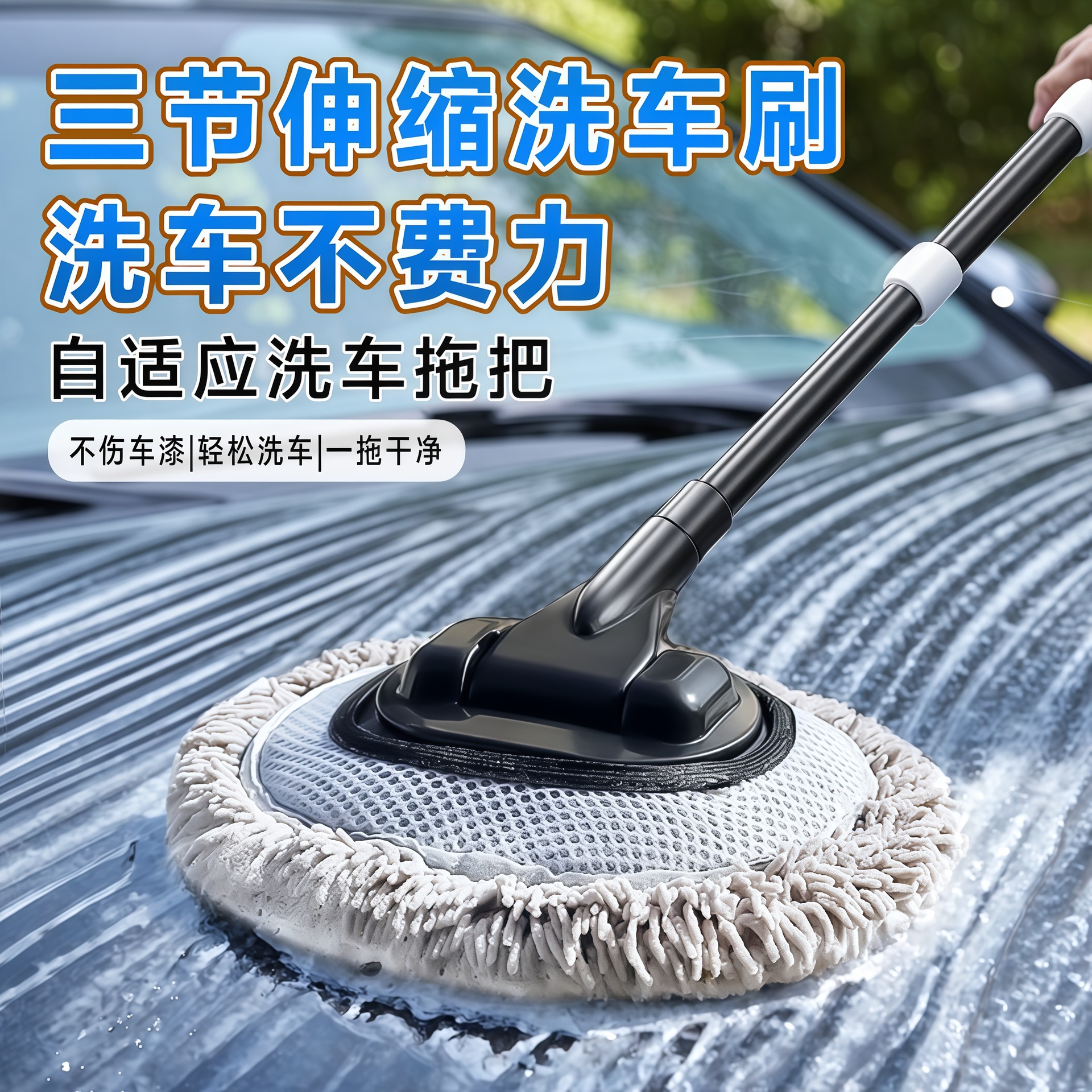 Lap cuci mobil, sikat sutra susu pegangan panjang rumah tangga, pel cuci mobil pegangan dapat ditarik