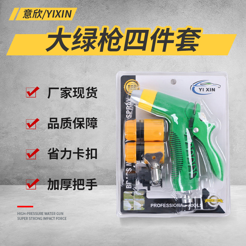 Penjualan langsung pabrik pistol air cuci mobil tekanan tinggi baru alat tembak air rumah tangga set empat potong pistol hijau besar grosir