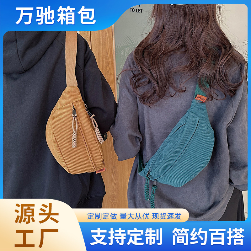 Tas dada trendi baru, tas dada sederhana, modis, warna solid, Tas Pinggang olahraga kasual, tas bahu corduroy, kapasitas besar, untuk siswa