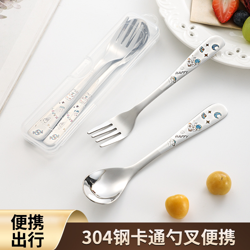 跨境304不锈钢儿童勺子餐具套装创意卡通喂养勺宝宝吃饭勺子叉子