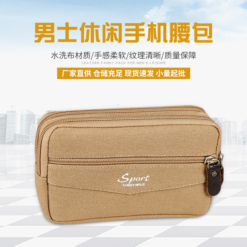 Tas ponsel pria baru lapisan ganda tebal tas pinggang warna solid persegi horisontal dompet koin portabel luar ruangan grosir kustom