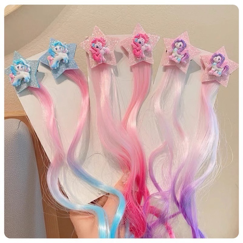 Kurommy Jepit Rambut Palsu Anak-anak Jepit Rambut Rajut Dye-dye Jepit Rambut Palsu Bintang Lima Persegi Kartun Lucu Aksesori Rambut Gadis Kepang