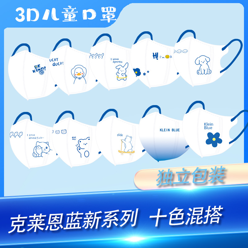Masker Anak Usia 4-12 Tahun Klein Biru Kemasan Stereo Independen Kartun Lucu Gratis Ongkir Grosir Mendukung Melangkah