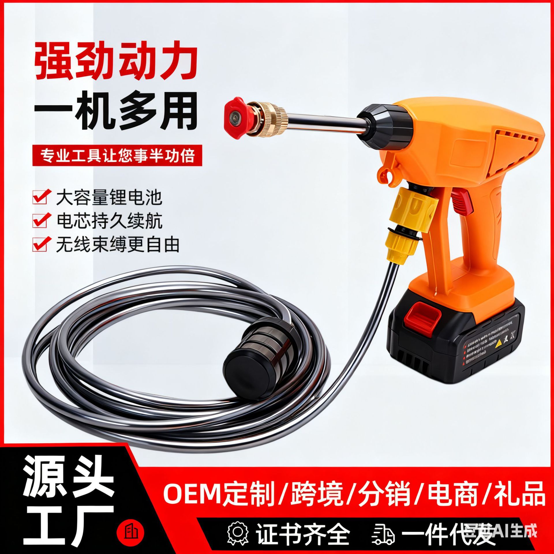 Pistol air tekanan tinggi nirkabel mesin cuci mobil portabel artefak cuci mobil lintas batas pabrik grosir pistol air baterai lithium rumah tangga