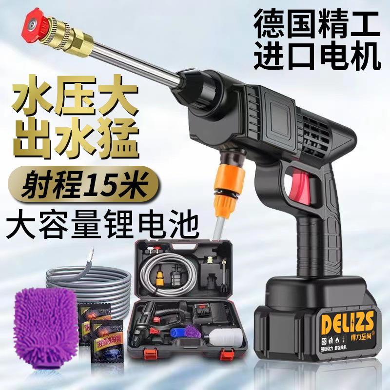 Mesin cuci mobil nirkabel Jerman, pistol air tekanan tinggi dapat diisi ulang rumah tangga, pembersih lantai cuci baterai lithium, tembaga murni lainnya