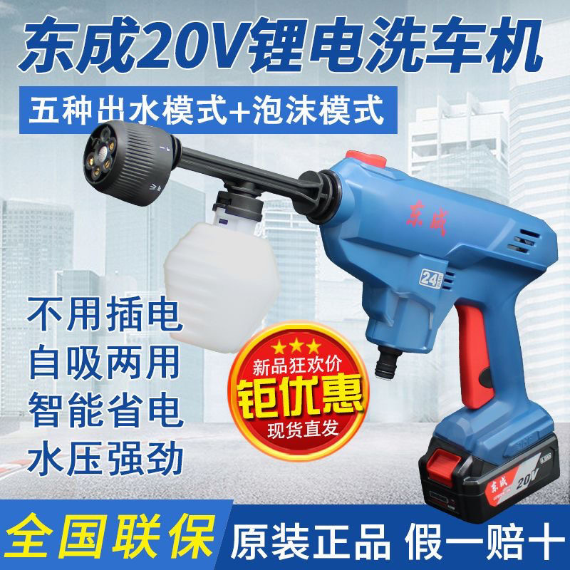 Mesin cuci mobil nirkabel Dongcheng untuk penggunaan di rumah, pistol air bertekanan tinggi portabel yang dapat diisi ulang, alat pembersih pompa air baterai lithium yang dapat dipasang di mobil.