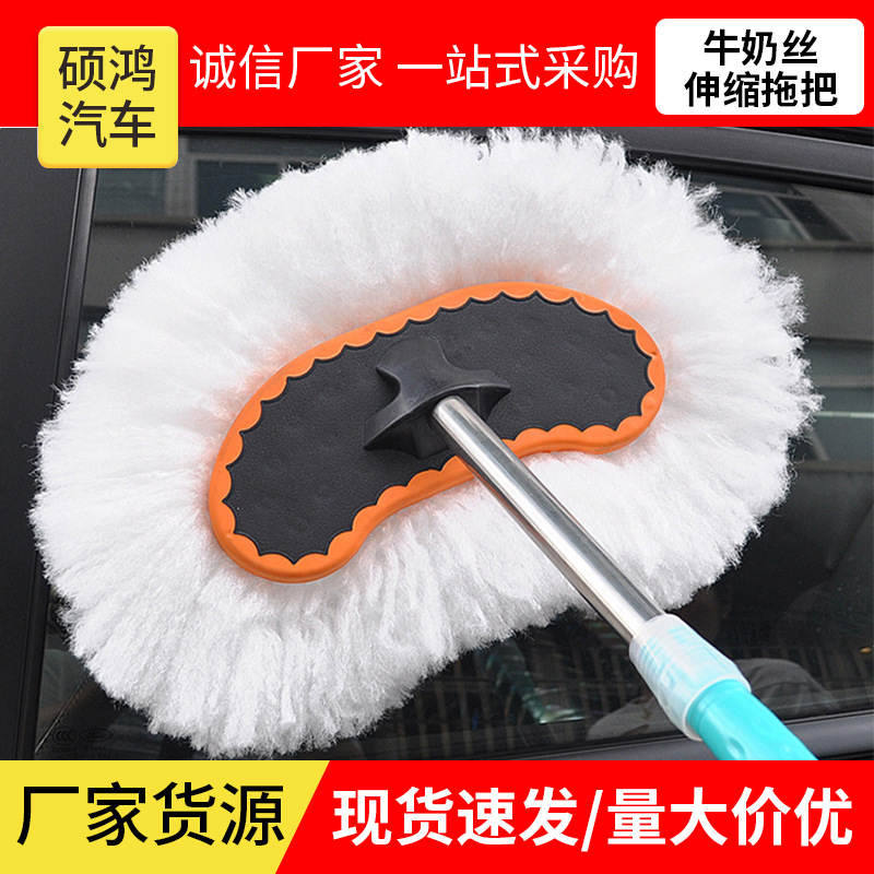 Mobil sutra susu cuci mobil pel tongkat panjang lilin pel air sikat mobil alat pembersih lap ditarik sikat debu debu