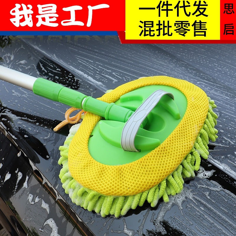 Chenille pel cuci mobil sikat mobil, alat pel lilin batang baja tahan karat dapat ditarik alat cuci mobil
