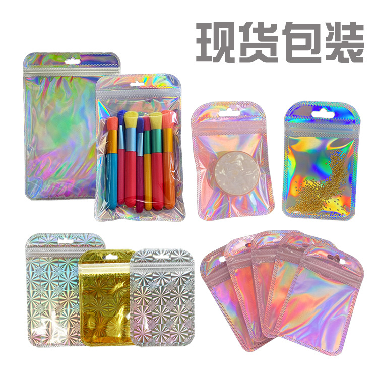 Tas aksesori rambut anting-anting tas laser merah muda flash sealing otomatis tas kemasan warna kuas makeup tas hadiah transparan