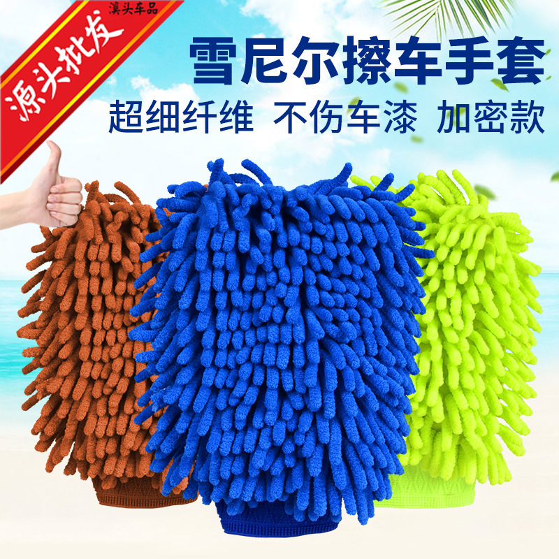 Sarung tangan chenille dua sisi, artefak cuci mobil lap nyaman handuk pembersih mobil serat sangat halus daya pembersih