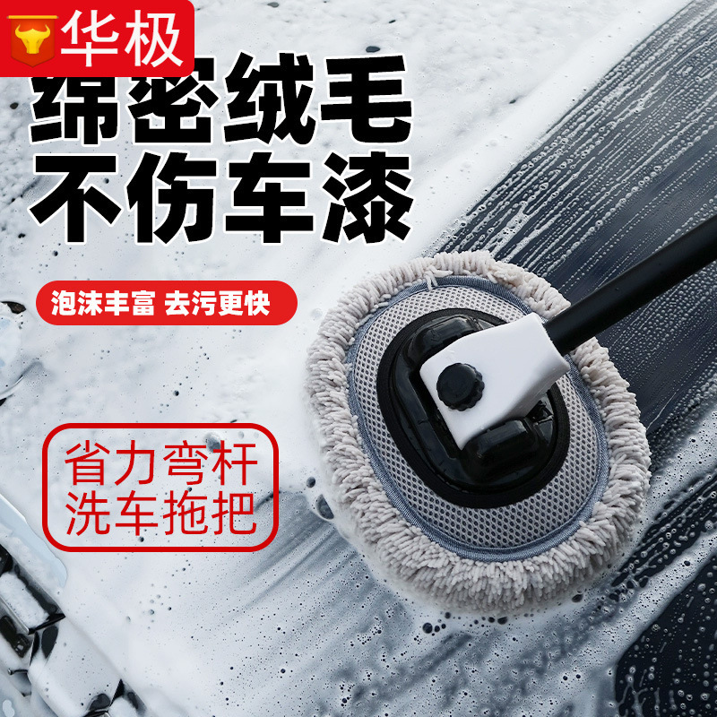 Pel cuci mobil portabel, tiga bagian dapat ditarik, pel lilin chenille, kaca pembersih mobil rumah tangga, sikat cuci mobil bulu lembut