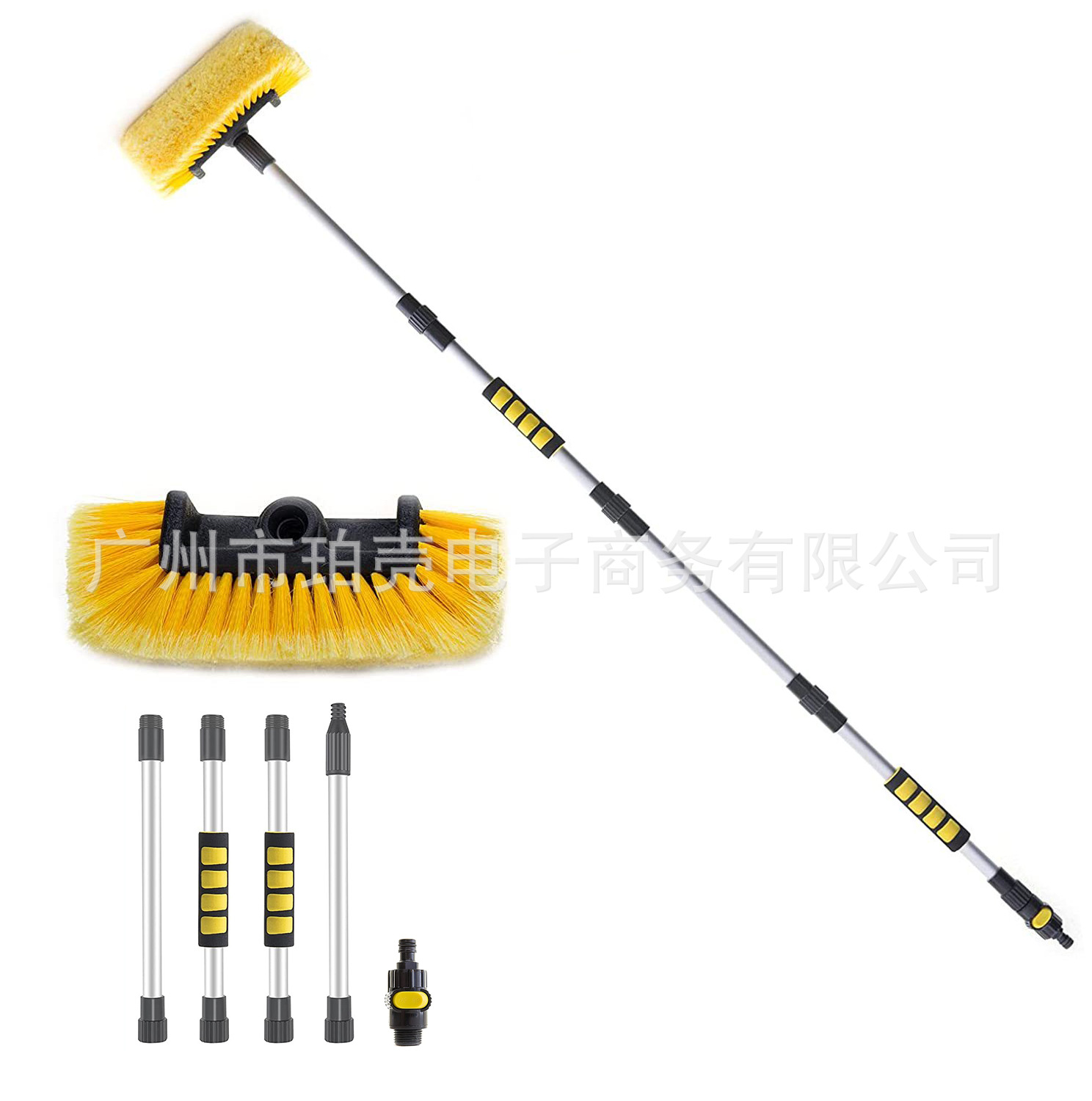 Kepala sikat 10 inci, sikat cuci mobil portabel, sikat air dapat dilepas, sikat lembut kuning, cuci mobil