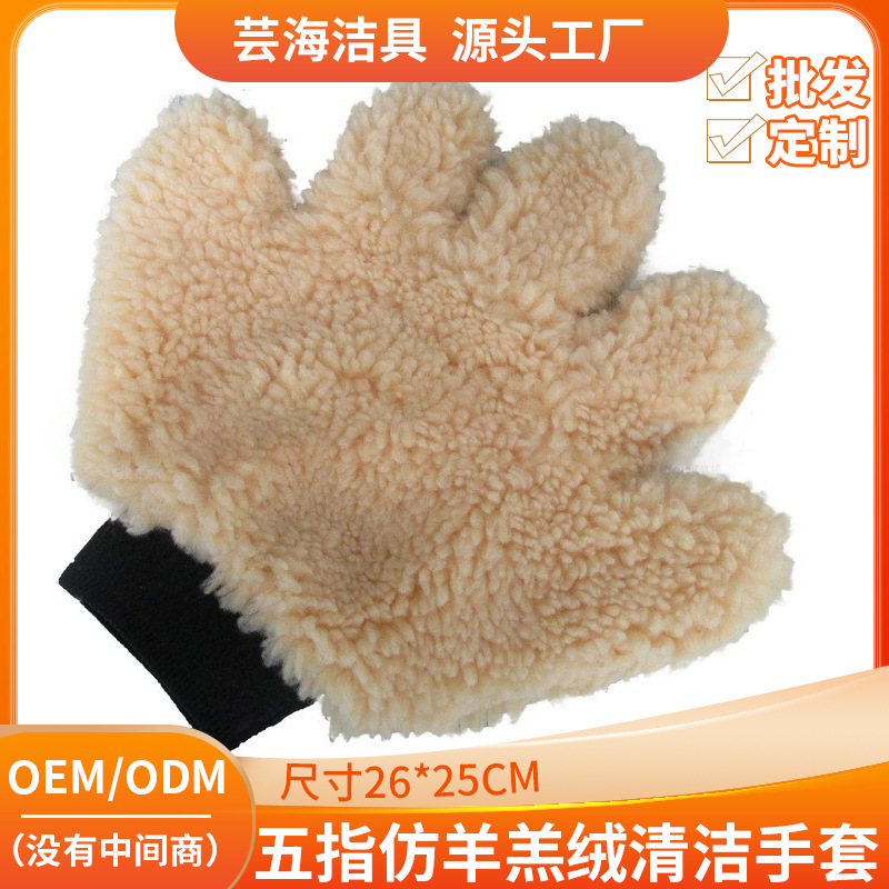 Sarung tangan cuci mobil 5 jari, sarung tangan waxing mobil imitasi mewah, sarung tangan pembersih dan pemoles perlengkapan mobil, sarung tangan lampwool imitasi