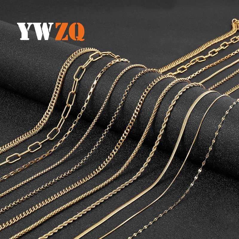 Beli Factory DIY kalung baja titanium wanita, rantai o berlapis emas asli 18K rantai tulang ular tidak pudar rantai Kuba rantai polos pria