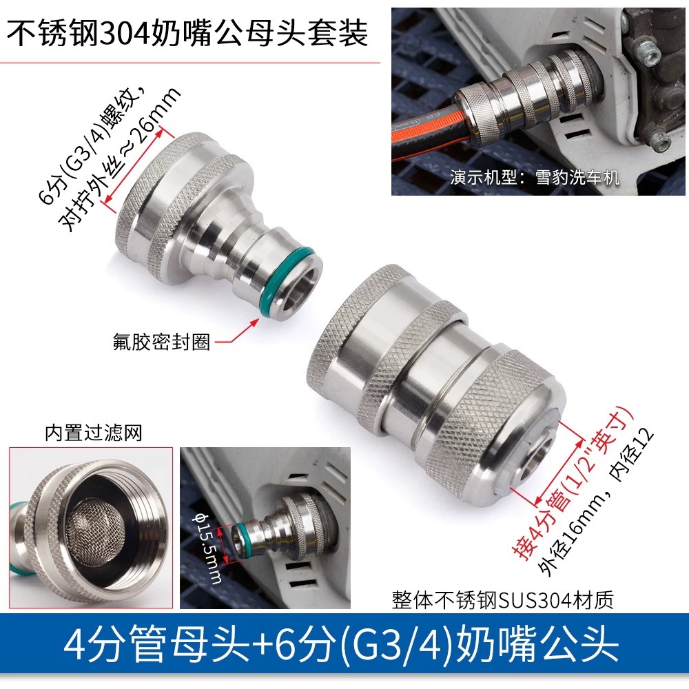 SUS304 Stainless Steel Puting SUS304 Sambungan Cepat Selang Air Konektor Air Keran Keran Air Keran 46 Menit Mesin Cuci Mobil Pistol Air Rumah Tangga