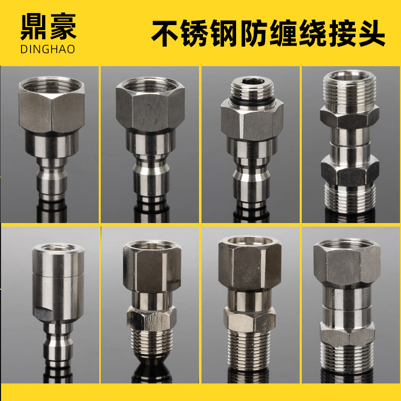 高压洗车机水枪尾不锈钢防缠绕旋转快接头清洗机M22出水管转接头