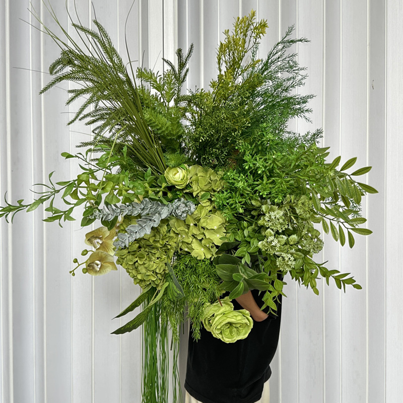 Bunga buatan hijau Mori daun pernikahan bahan pernikahan hall karangan bunga jalan memimpin bunga dinding baris tinggi bunga palsu