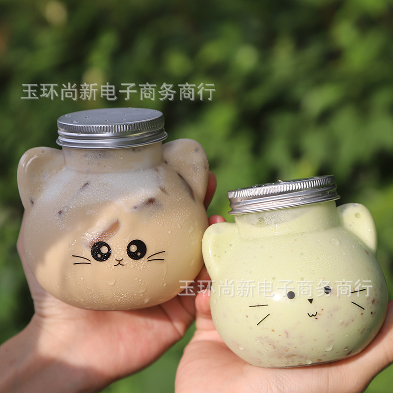 Botol Kepala kucing plastik sekali pakai transparan, botol dingin minum, jus susu, botol terlihat tinggi, kartun grosir tebal 530ml