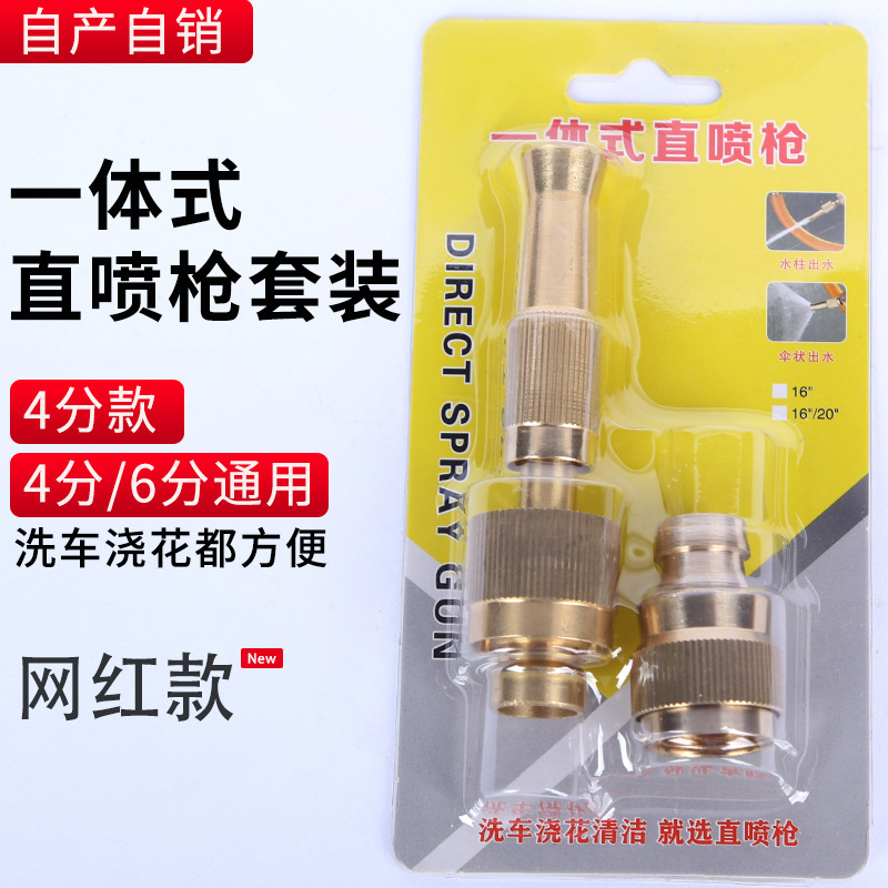 Pistol semprot satu potong konektor tembaga pipa air rumah tangga grosir 4 titik 6 poin keran saklar pistol semprot kuningan nosel tekanan tinggi