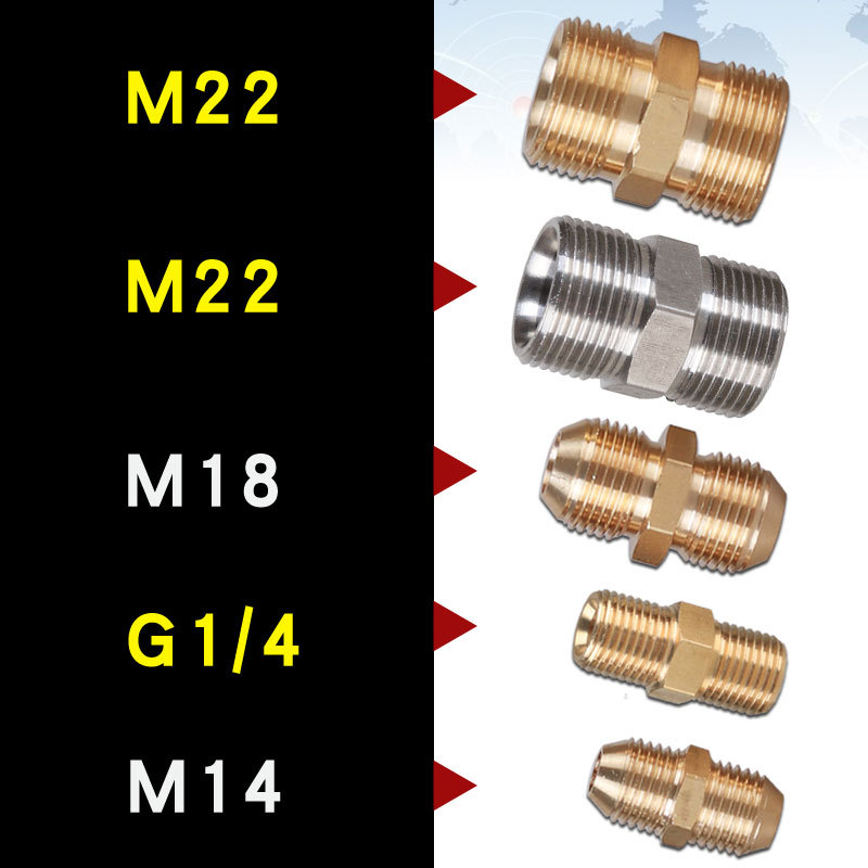 Aksesori pipa pencuci mobil tekanan tinggi G1/4M18M14 baja tahan karat luar M22 lubang 14 belokan 15 pasang adaptor kawat tembaga