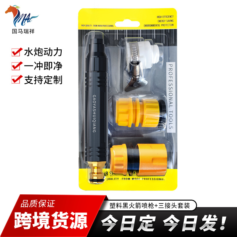 Produk Meledak Lintas Batas Grosir Cuci Mobil Tekanan Tinggi Pistol Air Rumah Tangga Hitam Konektor Air Konektor Universal Casing Busa Set