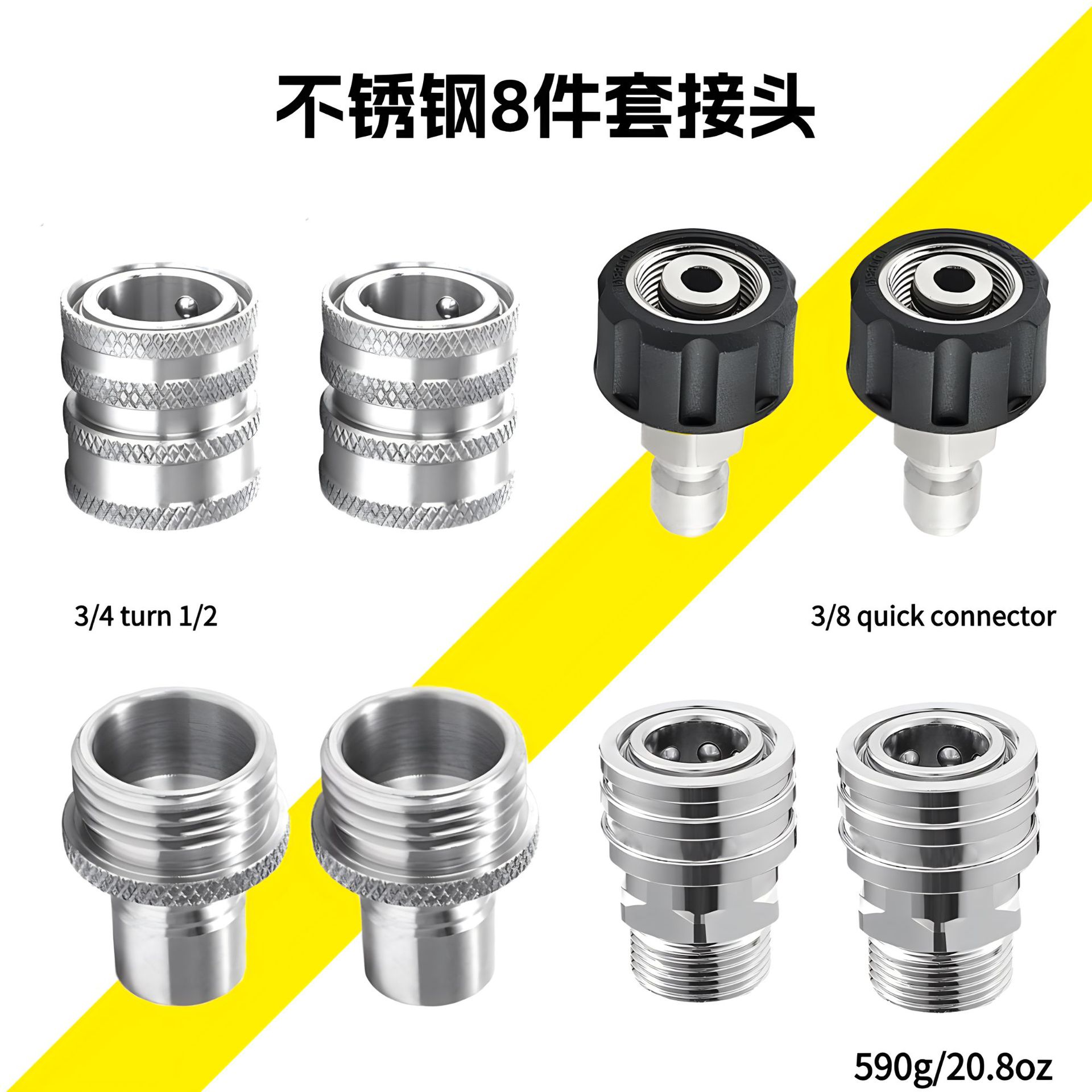 Mesin cuci tekanan tinggi lintas batas 304 baja tahan karat, pipa air cuci mobil rumah tangga, pistol air koneksi cepat, aksesori konektor