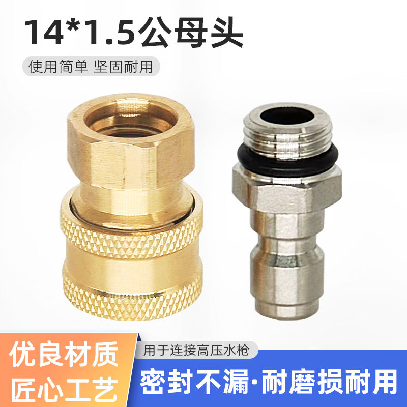 Konektor mesin cuci mobil tekanan tinggi, pistol air cuci mobil rumah tangga, konektor mesin cuci kepala pria stainless steel tembaga 14*1.5, koneksi cepat