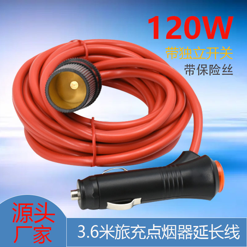 Pemantik rokok mobil, konverter pengisi daya kursi mobil, catu daya tinggi, kabel pencahayaan luar ruangan, garis panjang 3.6 m