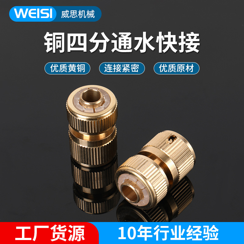 Konektor air tembaga 4-titik ke konektor cepat tembaga 4-titik untuk pistol air cuci mobil, aksesori dan suku cadang selang sambung cepat, selang sambung cepat.