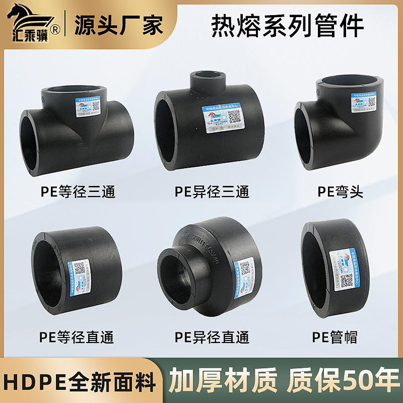 Fitting pipa leleh panas HDPE yang dipertebal koleksi lengkap pipa pemipaan langsung aksesoris pe diameter sama mengurangi siku pe tee langsung