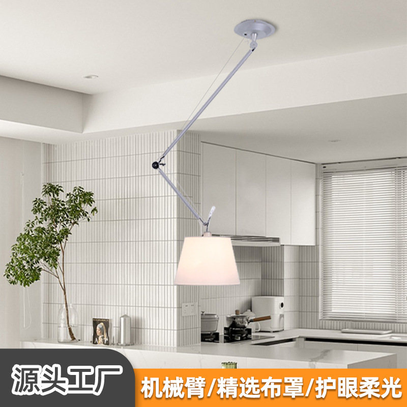 Lampu gantung Lengan Panjang mekanis Italia, lampu belajar restoran gaya sederhana kreatif lengan teleskopik dapat disesuaikan kepala ganda