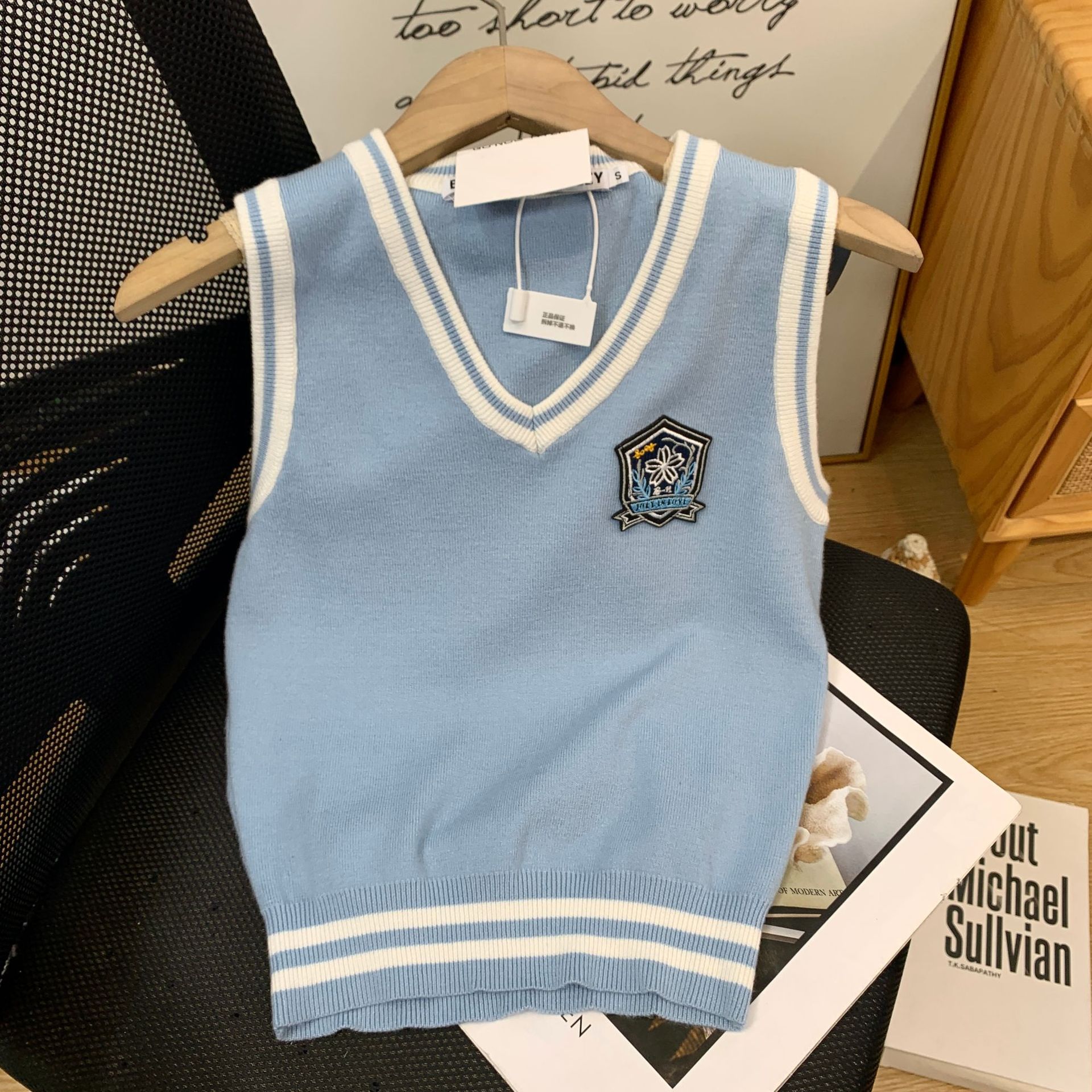 Barang obral tersedia: Rompi/rok/kemeja biru tua dengan desain unik, lapisan bergaya garam, tidak dapat dikembalikan atau diganti.