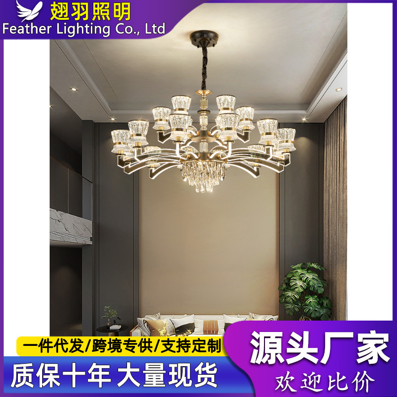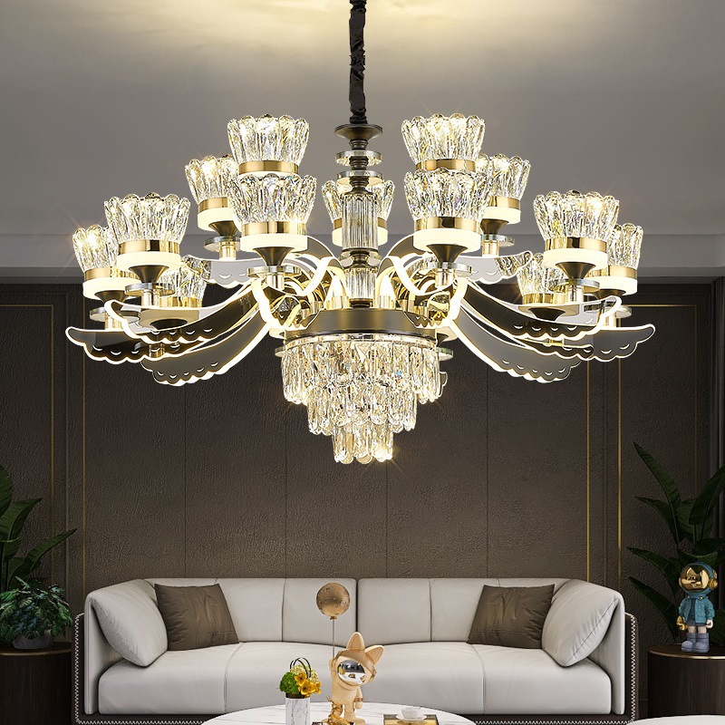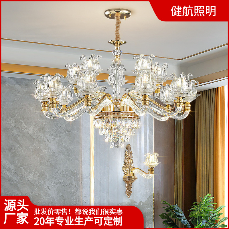 Lampu kristal Post-modern lampu ruang tamu lampu Utama Mewah lengan bercahaya lampu restoran villa mewah Eropa sederhana
