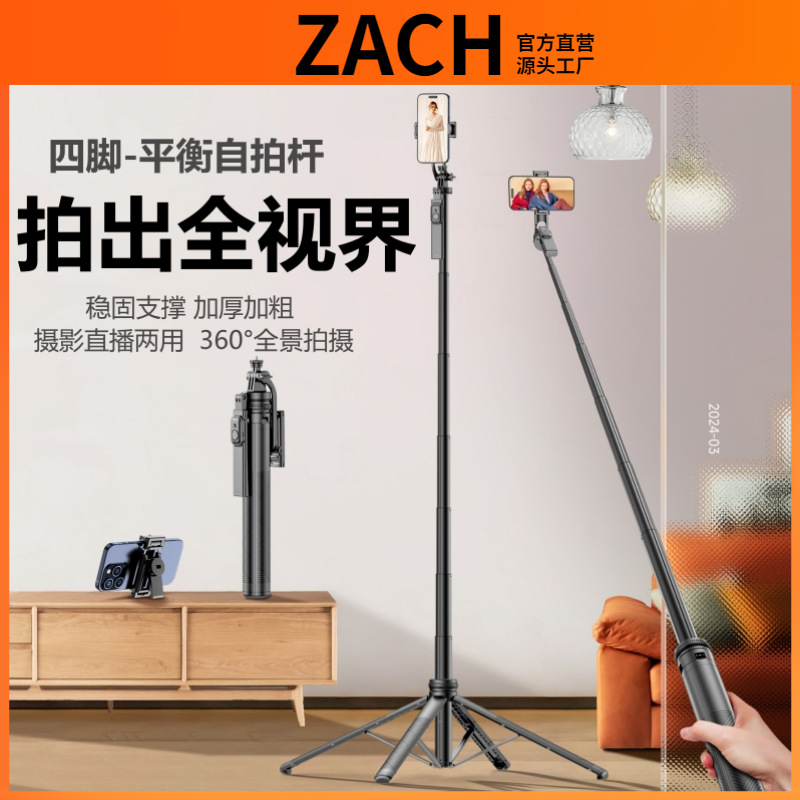 ZACH tongkat selfie, dudukan lantai tripod empat m multifungsi, tongkat selfie 360 ° diperpanjang stabil, pegangan keseimbangan 1.8 m