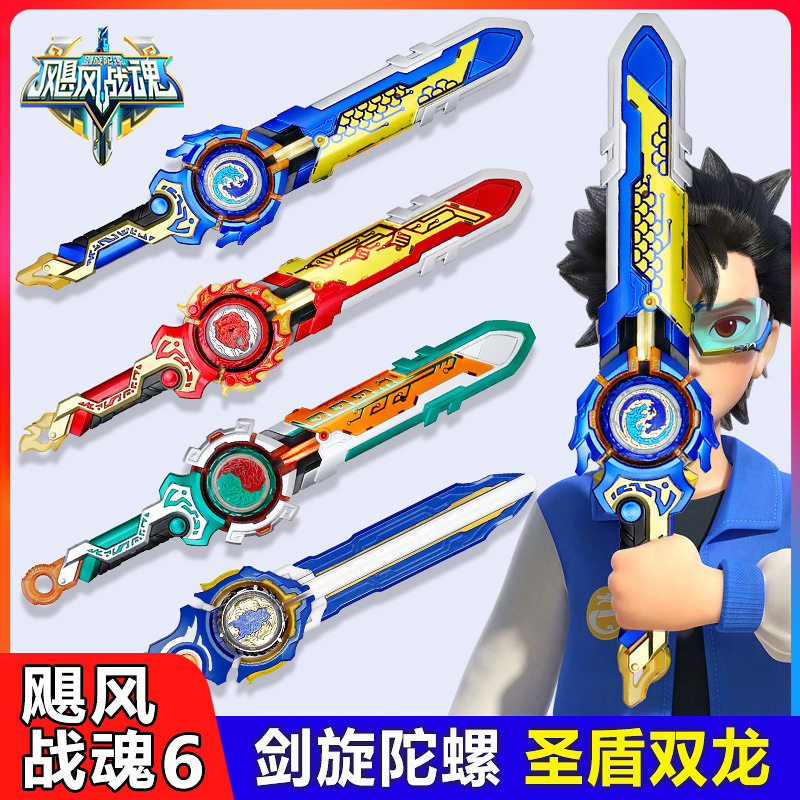 Angin Badai Jiwa 6 Pedang Berputar-putar Pertarungan Gyro Pedang Tiga Tingkat Pedang Suci Mainan Anak Putar Anak Laki-laki