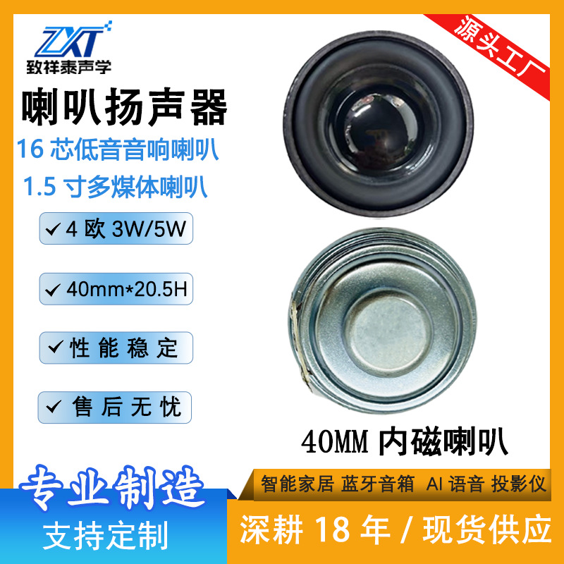 Speaker magnetik internal 40mm tersedia, 4 ohm 5W, speaker Bluetooth multimedia, speaker mesin edukasi dini, speaker 16-core.