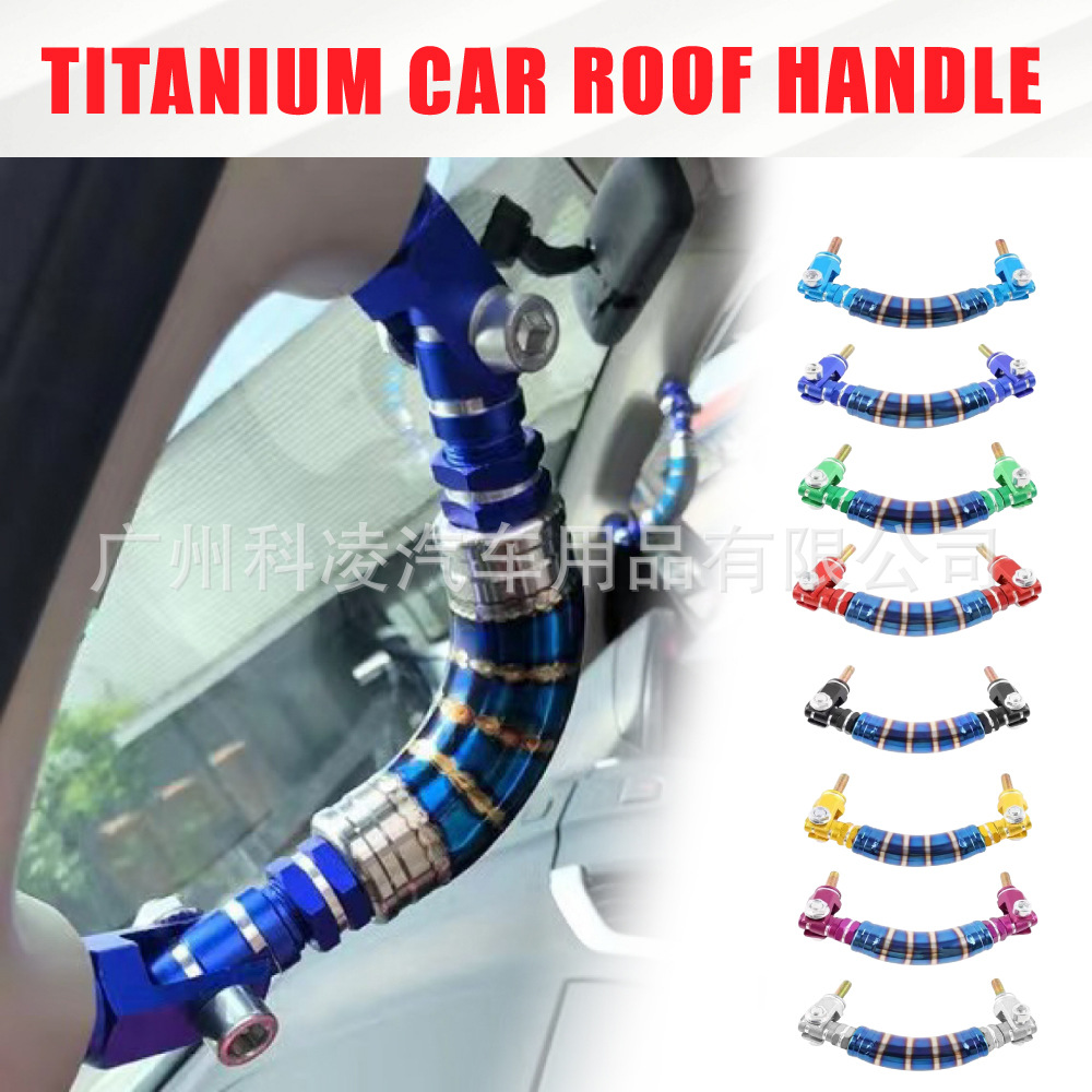 Sandaran tangan modifikasi mobil universal, sandaran tangan mobil aluminium Aloi biru kait dekoratif pegangan melengkung