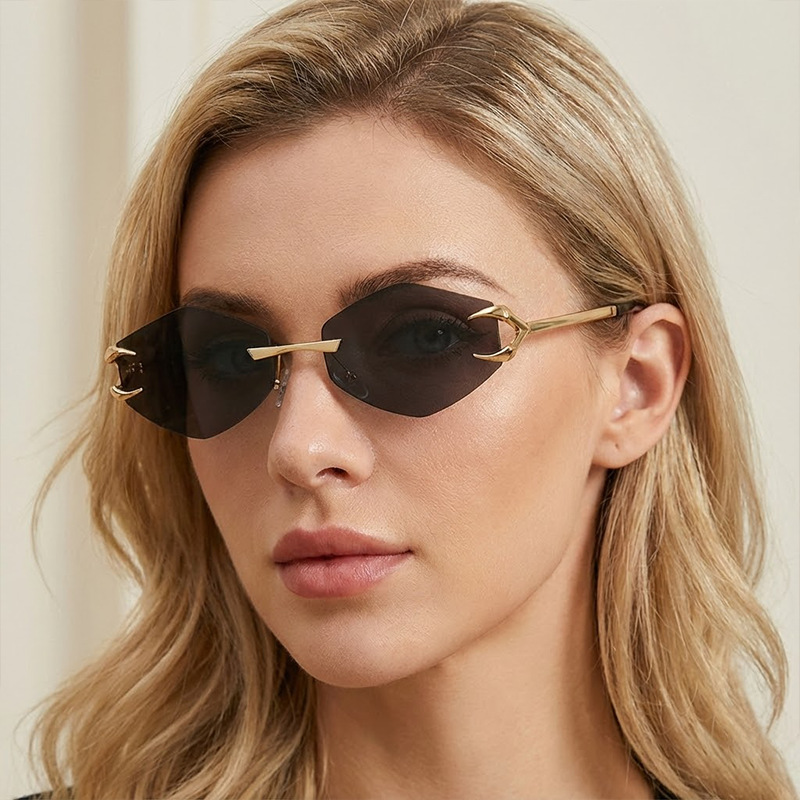 Kacamata Hitam Bentuk Berlian Logam Tanpa Bingkai Pemotong Pinggir Eropa dan Amerika
