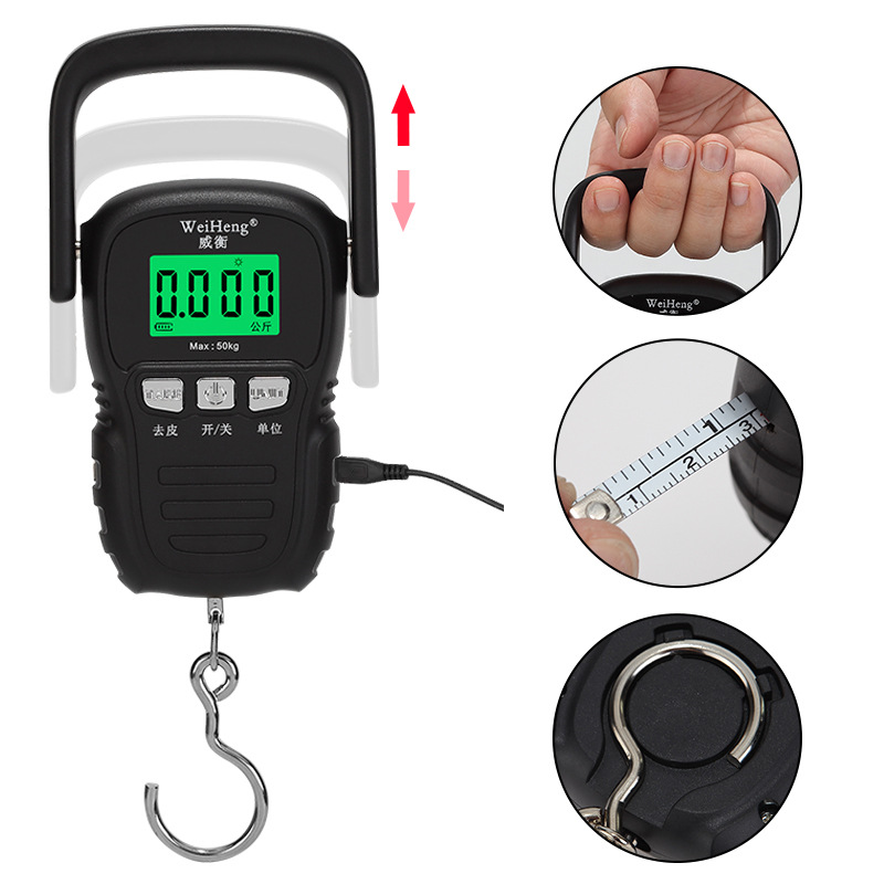 WH-A29 timbangan portabel pengisian daya ultra lebar, timbangan kilat 50kg, timbangan elektronik, timbangan kait dengan plester