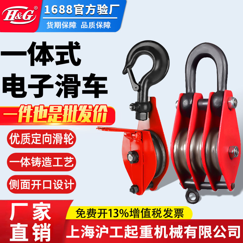Shanghai Hugong kait pengangkat katrol angkat standar nasional dengan bantalan manual, tali kawat baja hemat tenaga kerja, cincin pengangkat roda tunggal