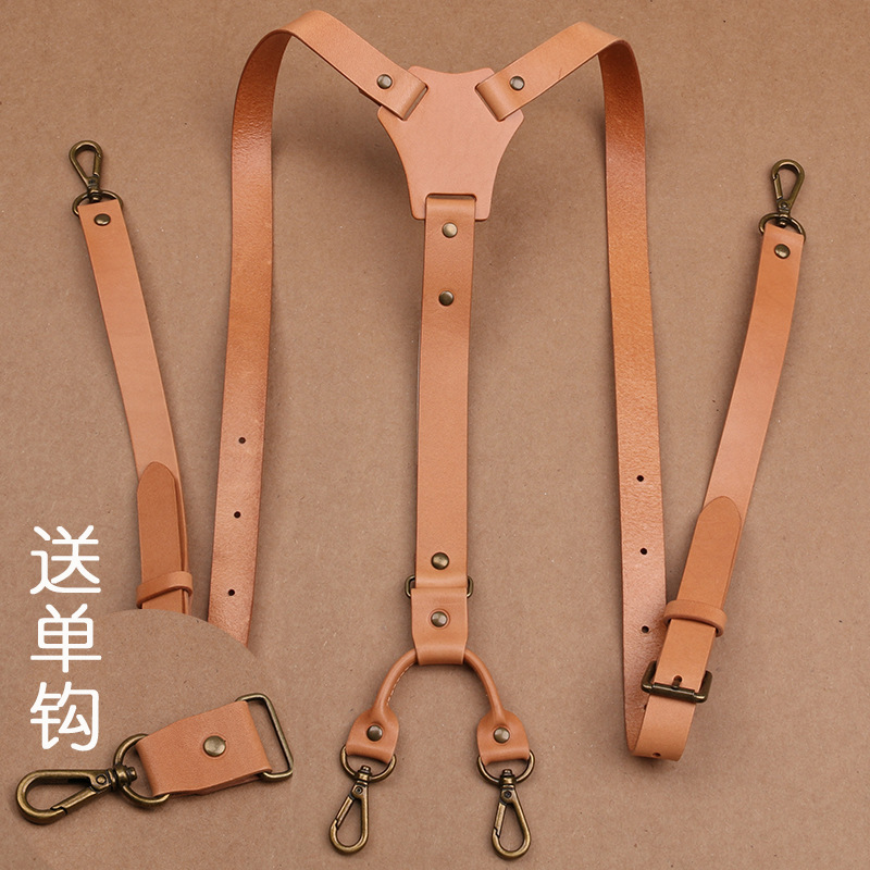 Klip suspender kulit sapi penuh pria, suspender dengan kait dapat diganti celana setengah baya dan lansia dengan lapisan pertama warna utama kulit sapi