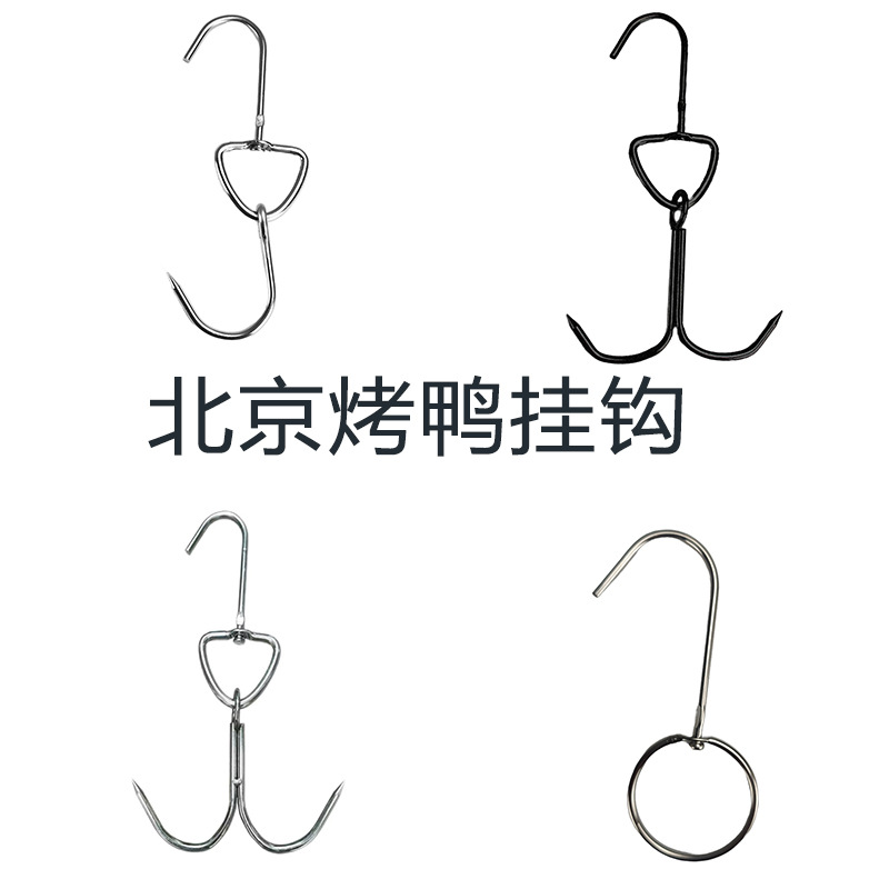 Kait cincin bebek panggang Beijing baja tahan karat kait barbekyu daging bebek panggang tebal kait ganda bebek panggang renyah