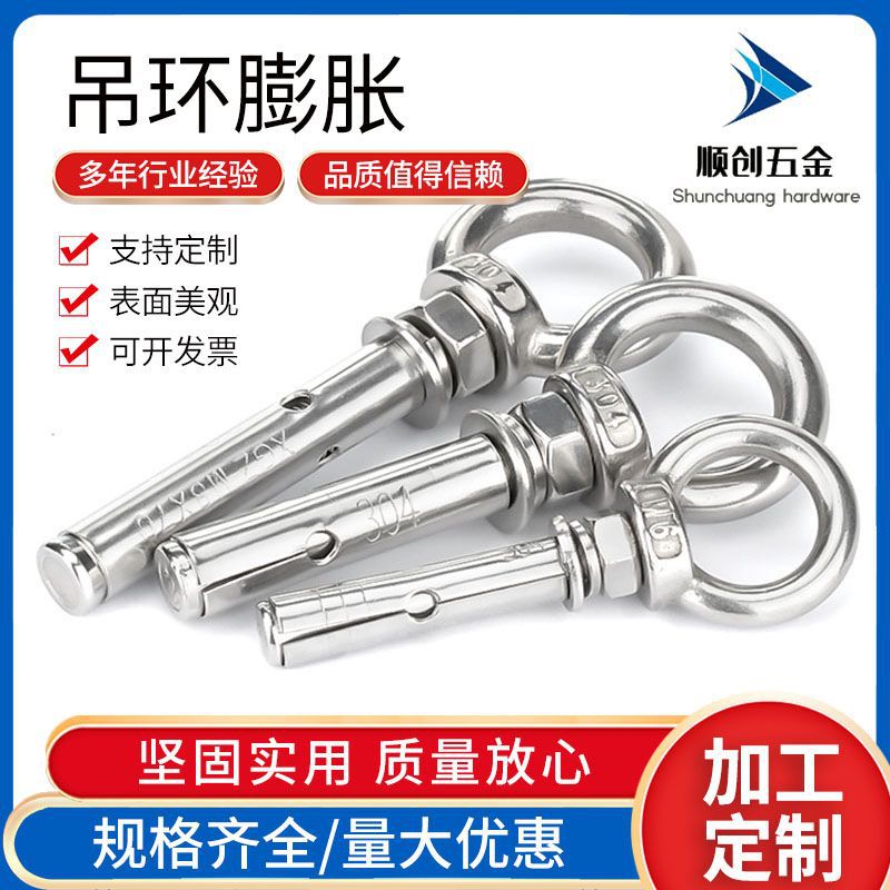 201 cincin besi tahan karat cincin ekspansi kantung pasir kait tempat tidur gantung kait ayunan dengan cincin lubang bulat sekrup ekspansi M6-M16