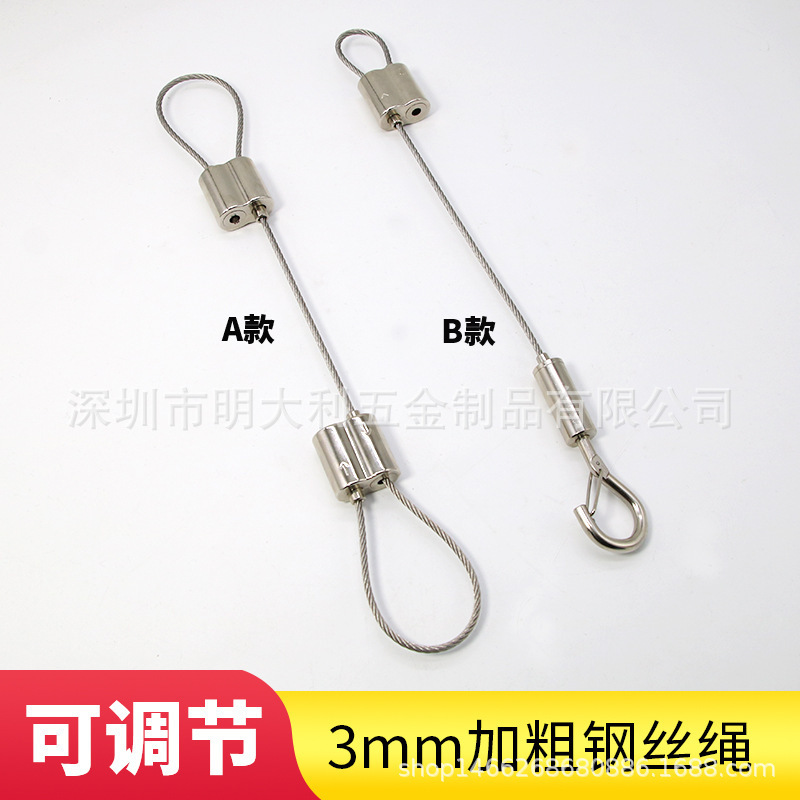 3mm kawat baja tahan karat tipis lembut, tali kawat baja berkepala ganda, kait lampu gantung kawat baja, kait gantungan pakaian dapat disesuaikan