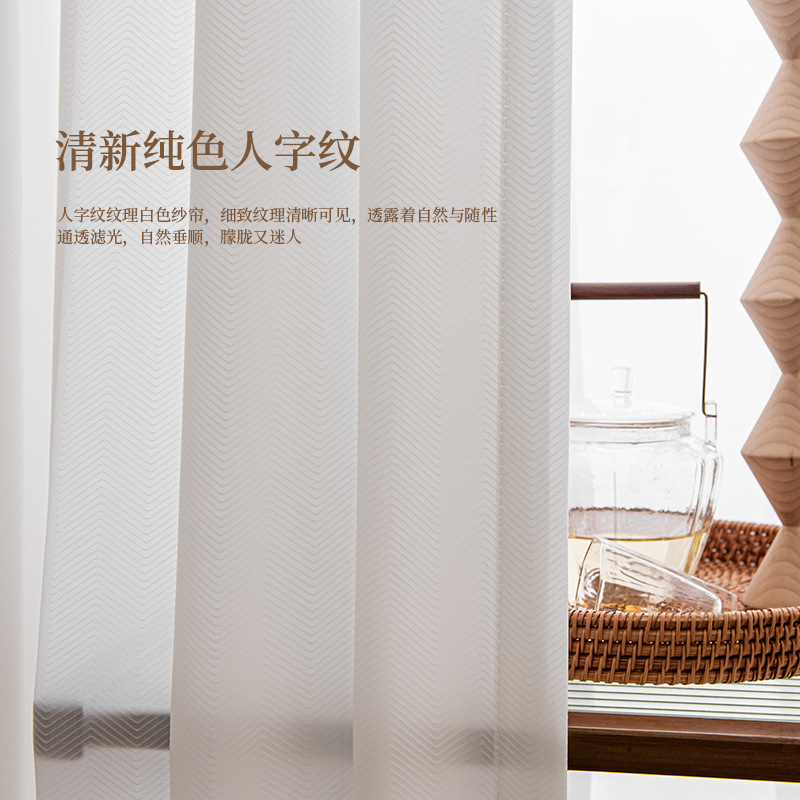 Tirai kasa putih pola Herringbone, layar jendela transparan ruang tamu balkon tirai kasa putih 2022 grosir pabrik layar jendela