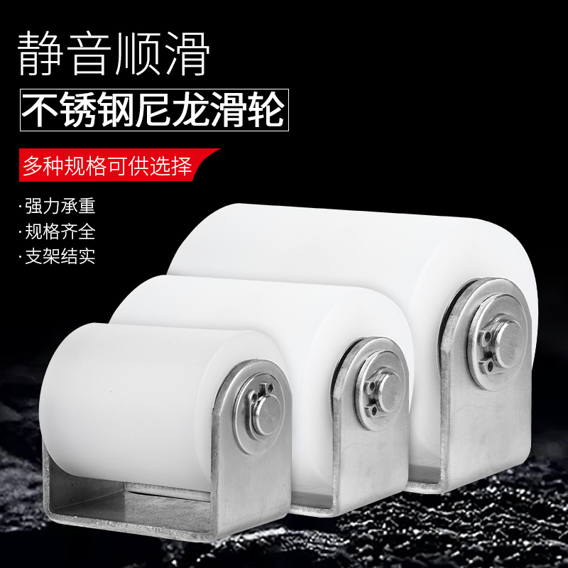 Roda nilon baja tahan karat 201/304 dengan bingkai roda gulungan pintu seluler Polipropilena pintu geser mobil PP bantalan roda katrol